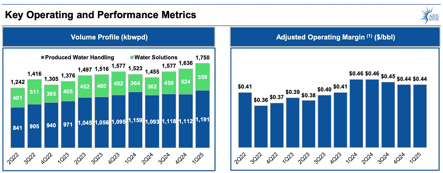 - Aris’s recycled water technology will keep improving over time, increasing the amount of water they can sell back. This will help expand the operating margin per barrel of oil without larger capex increases.